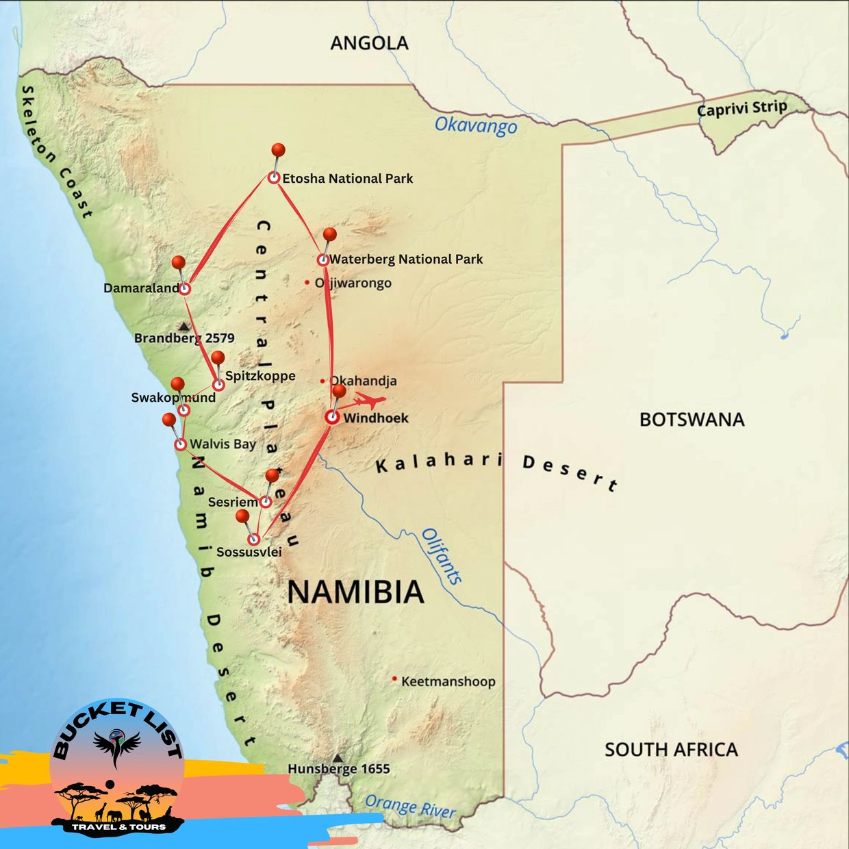 Windhoek | Waterberg National Park | Etosha National Park | Damaraland | Spitzkoppe | Swakopmund & Walvis Bay | Sesriem | Sossusvlei